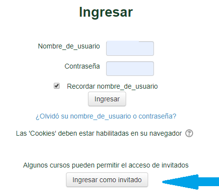 Te solicitará el usuario y contraseña. Si tienes usuario ingresa tus datos, sino elige el botón ingresar como invitado y luego completa la contraseña correspondiente al curso.